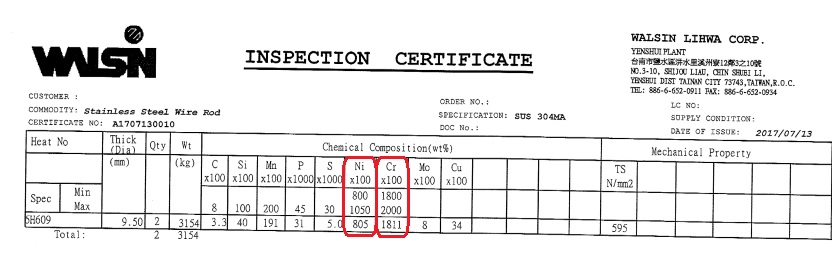 國際編號: 304 (18-8) 為不鏽鋼的身分證