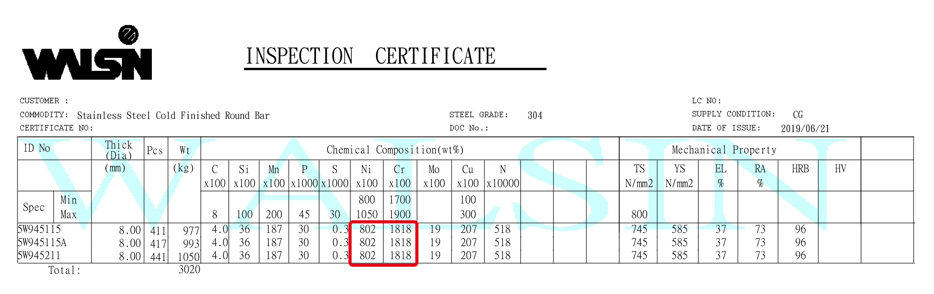 國際編號: 304 (18-8) 為不鏽鋼的身分證