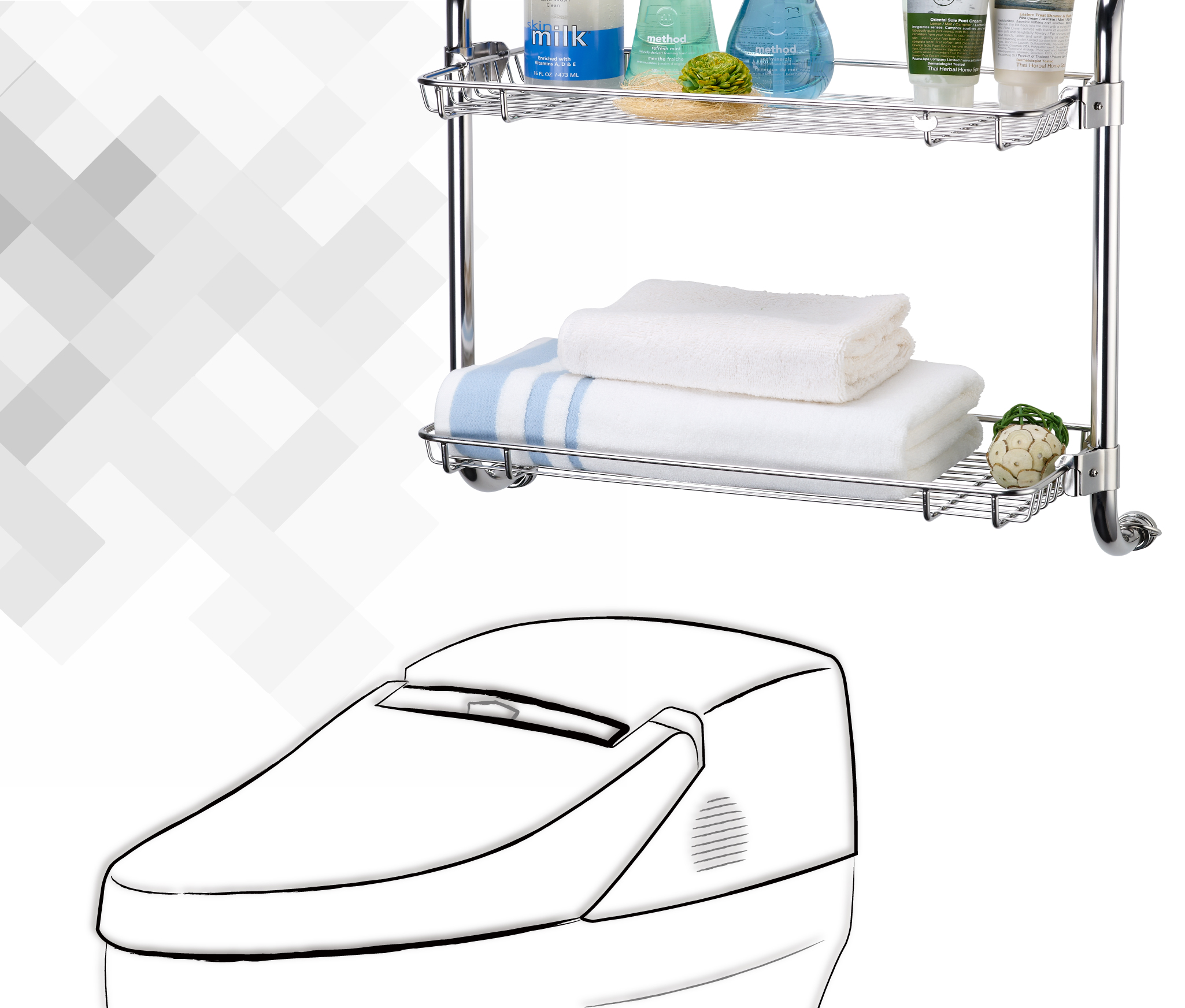 浴室裡的馬桶上方,如您需要放一些衛生紙、瓶瓶罐罐 ... 等儲備用品