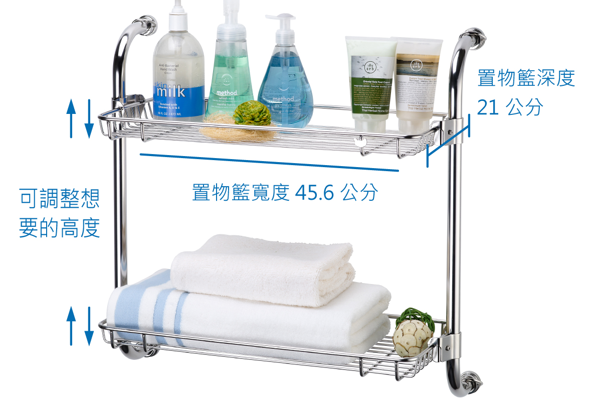 功能 雙層置物架,上下層均可 “任意調整” 所需之位置
