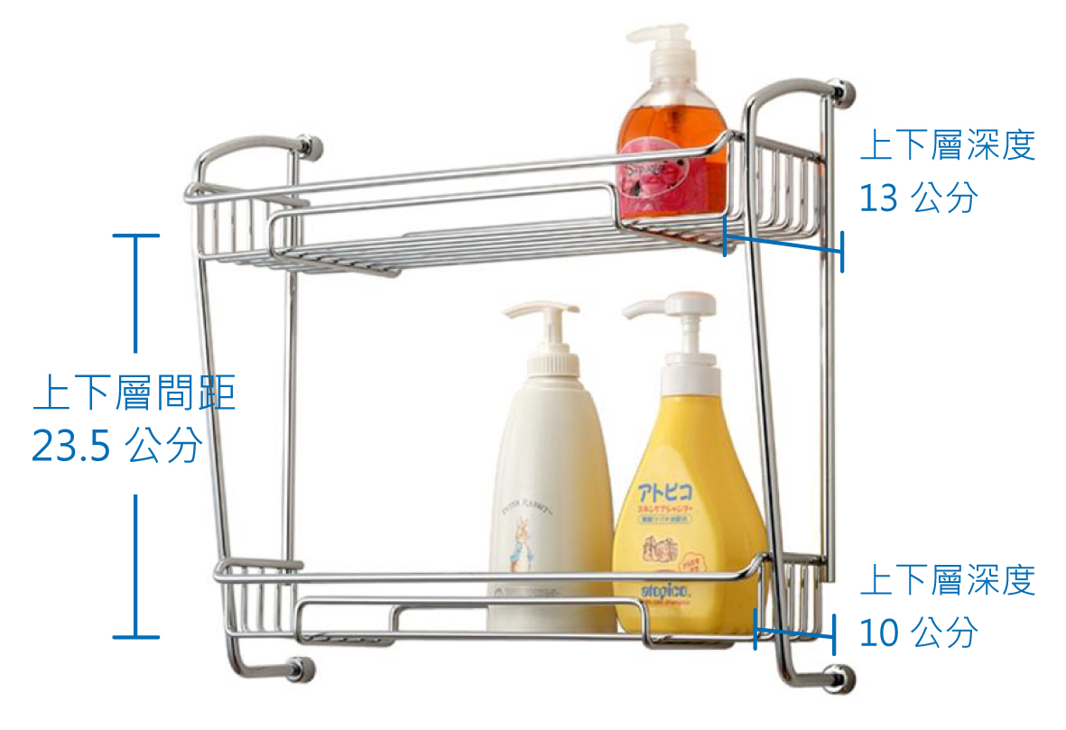 | 內部配件: | 不鏽鋼雙層置物架 * 1 、不鏽鋼接頭 * 4 、不鏽鋼螺絲 * 4 、不鏽鋼固定螺絲 * 4 、壁塞 * 4 、六角板手 * 1 |
