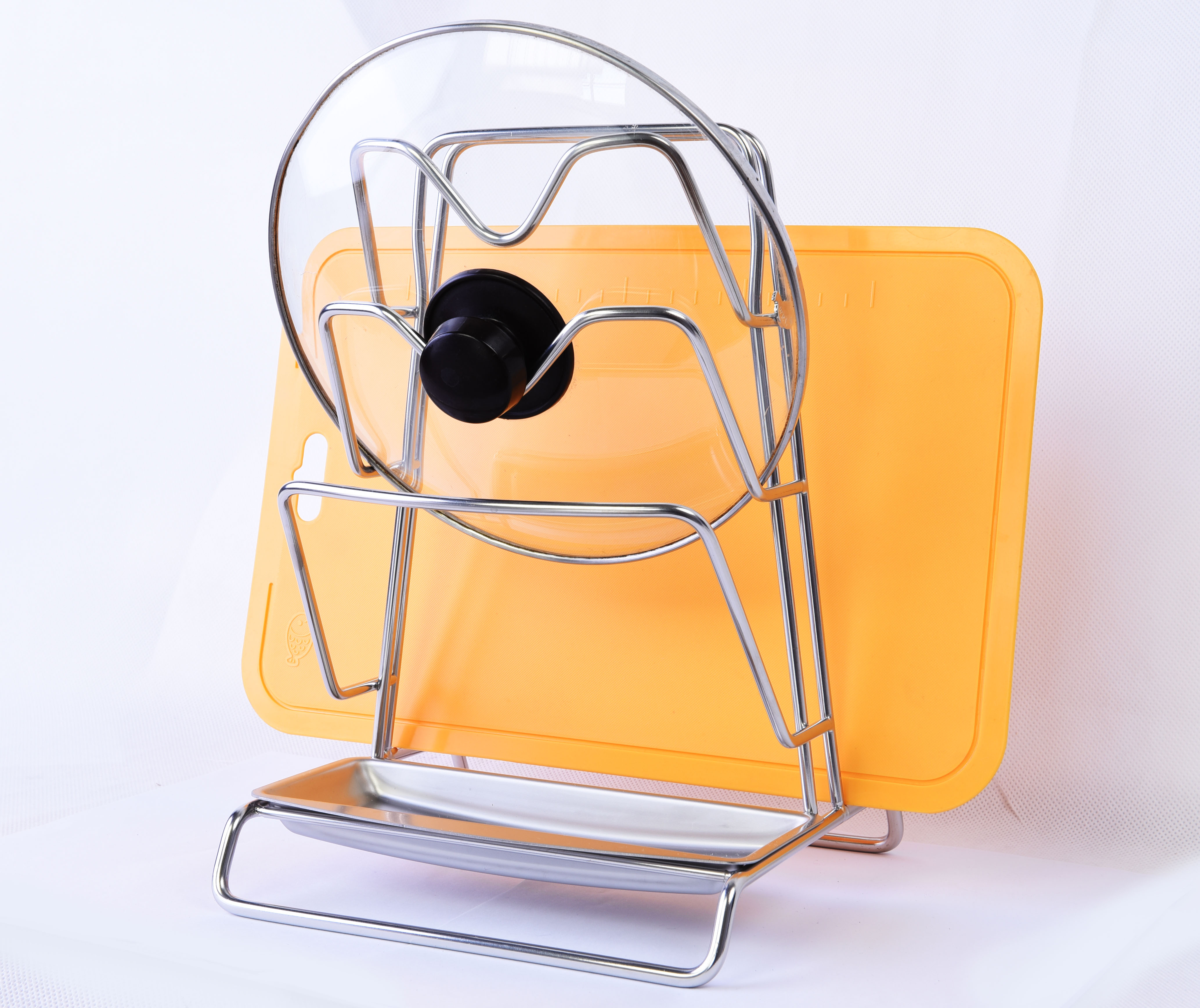 您還在為調理用鍋蓋找不到位置擺放,而傷腦筋嗎?『 welmi 味美獨創 』前衛且貼心的 V 型圓弧設計,讓您能更放心的擺放鍋蓋,完全不用擔心掉落的問題。 直立式的造型,下方擺放滴水盤,讓您的廚房不再常常濕答答!