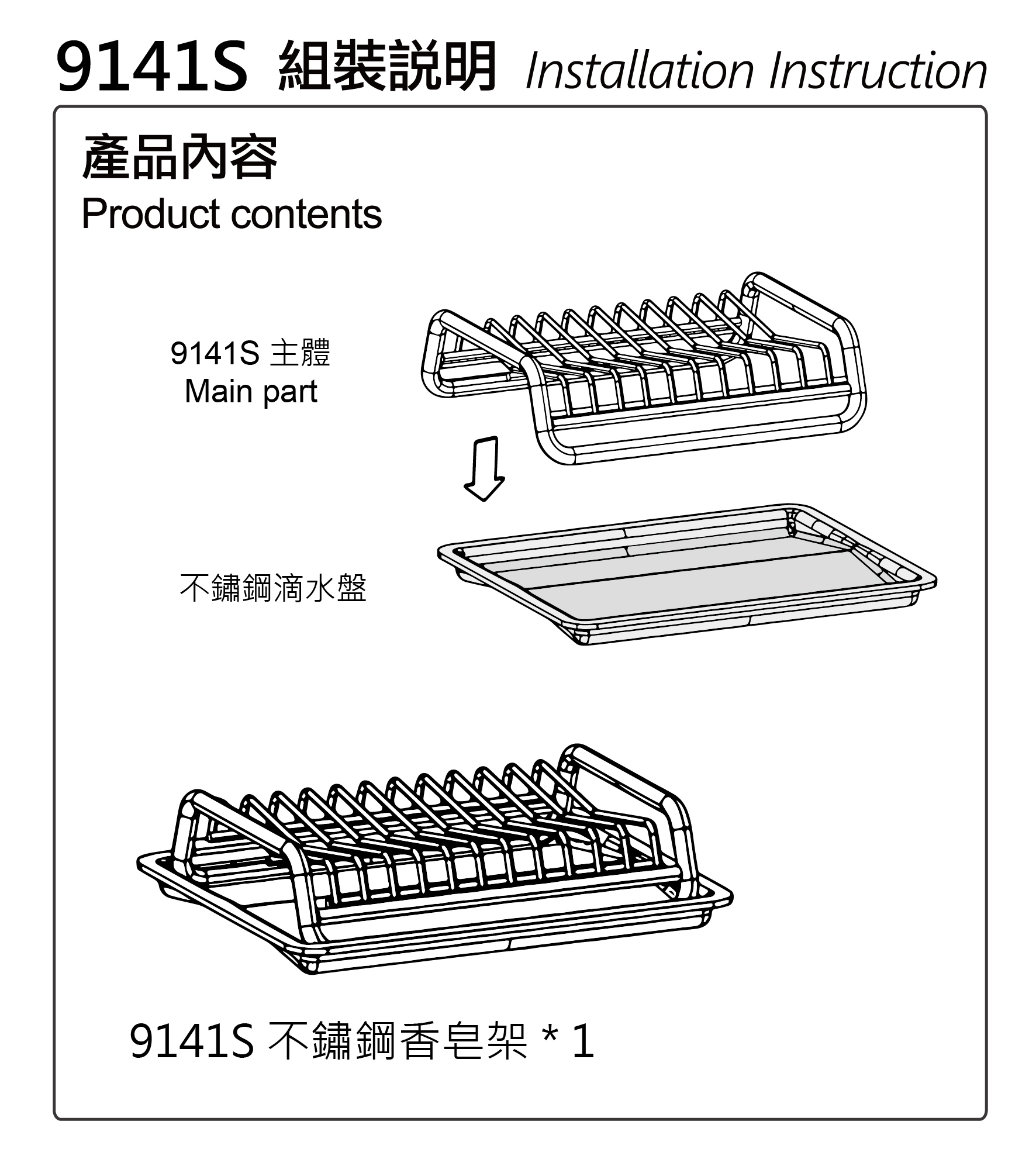| 內部配件: | 不鏽鋼香皂架 * 1 , 不鏽鋼滴水盤* 1 |