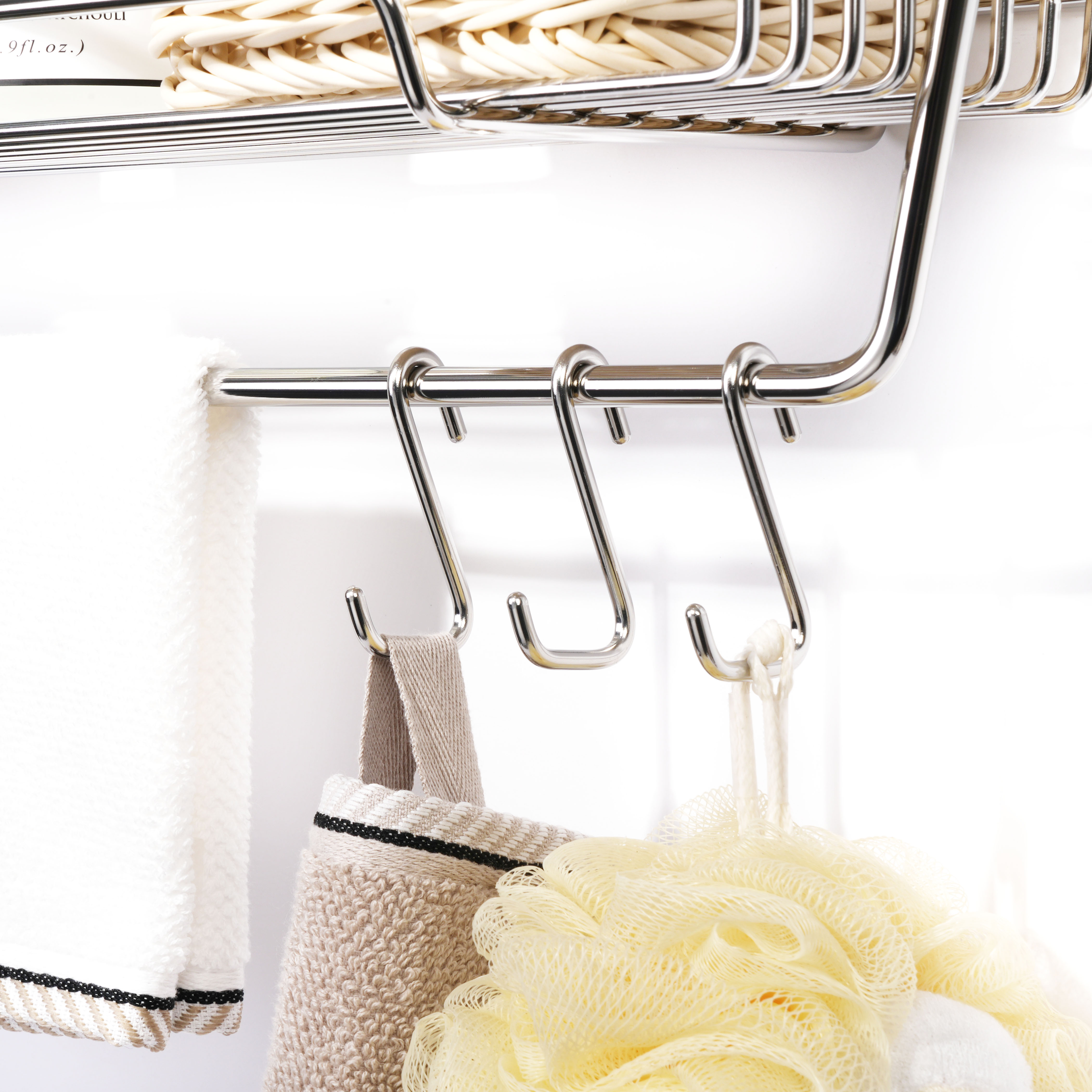 不鏽鋼置物毛巾架 45 公分 * 1 不鏽鋼基座 * 2 不鏽鋼螺絲 * 2 不鏽鋼固定螺絲 * 2 塑膠壁塞 * 2 六角板手 * 1 不鏽鋼小天鵝型 S 勾 * 3 |