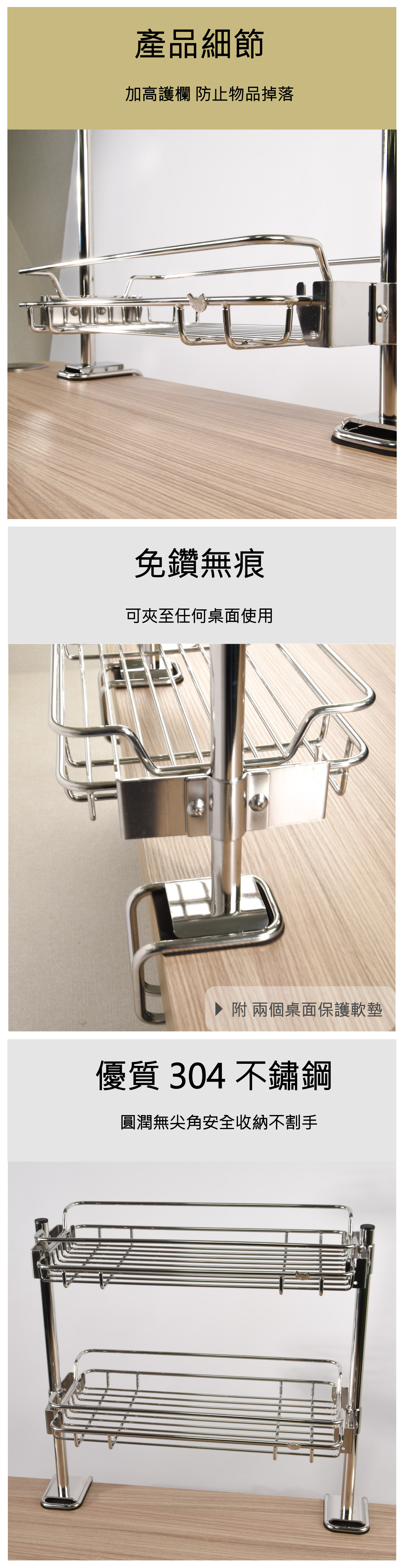 - (3) 不鏽鋼螺絲配件,雙層均具有強大的荷重 , 確保安全!