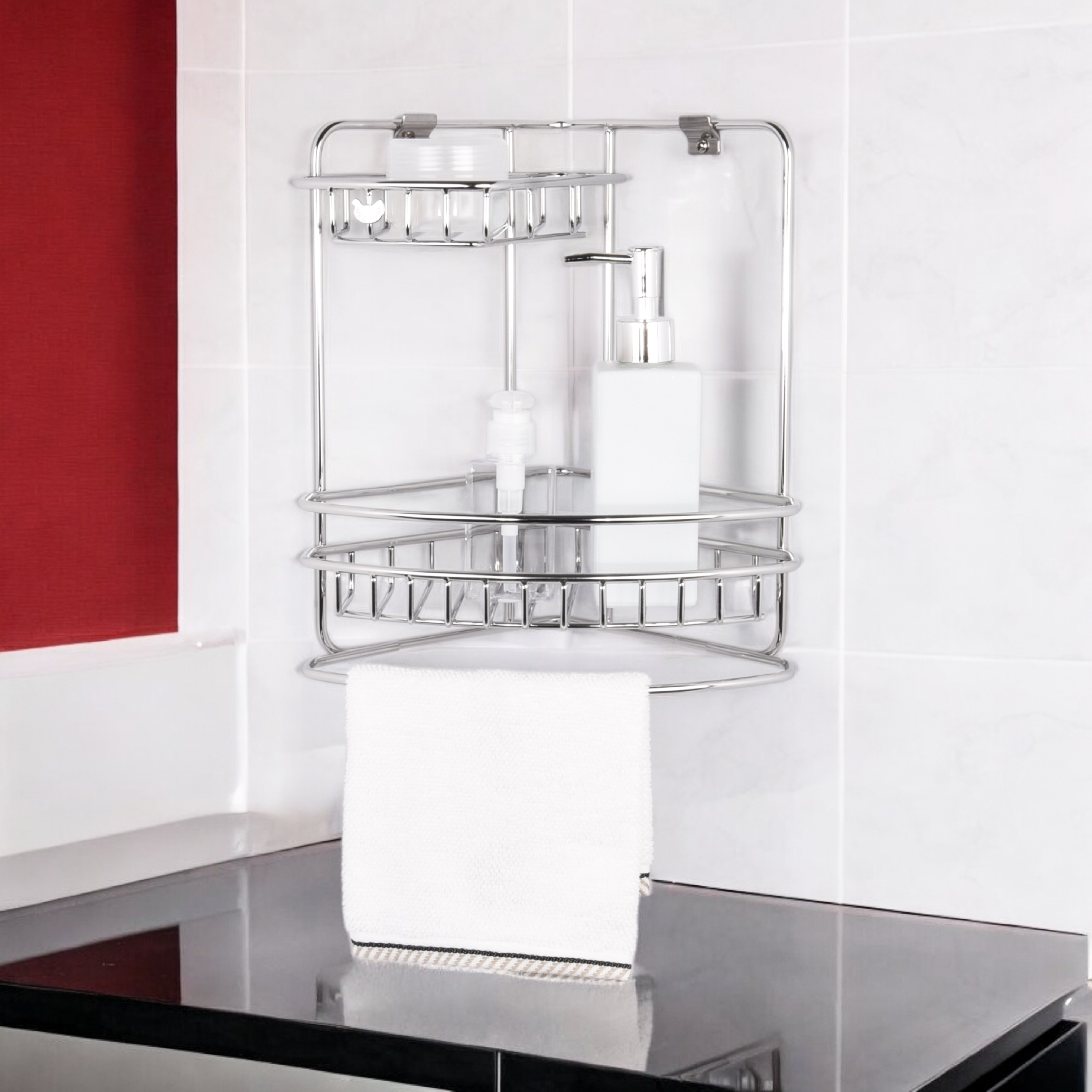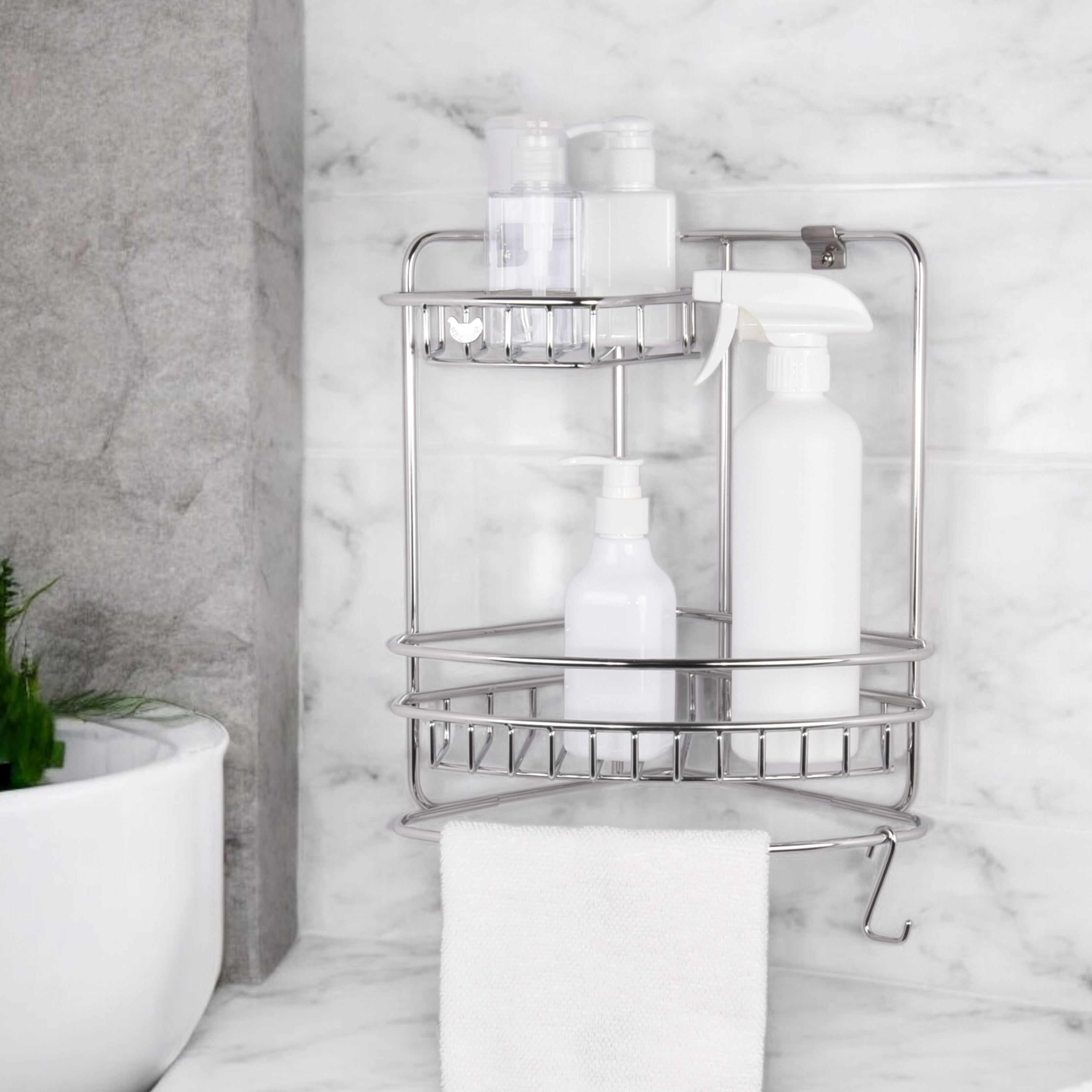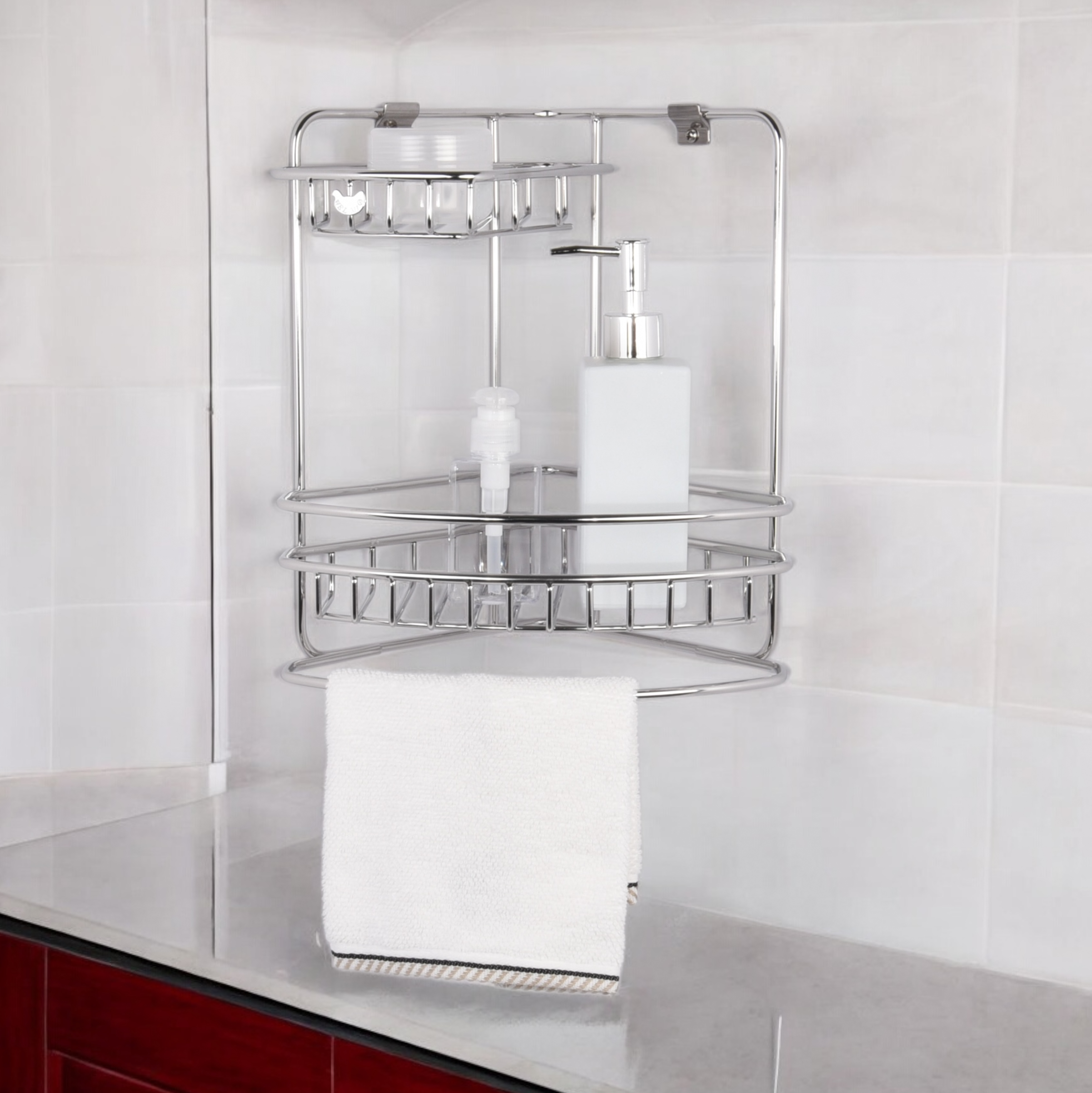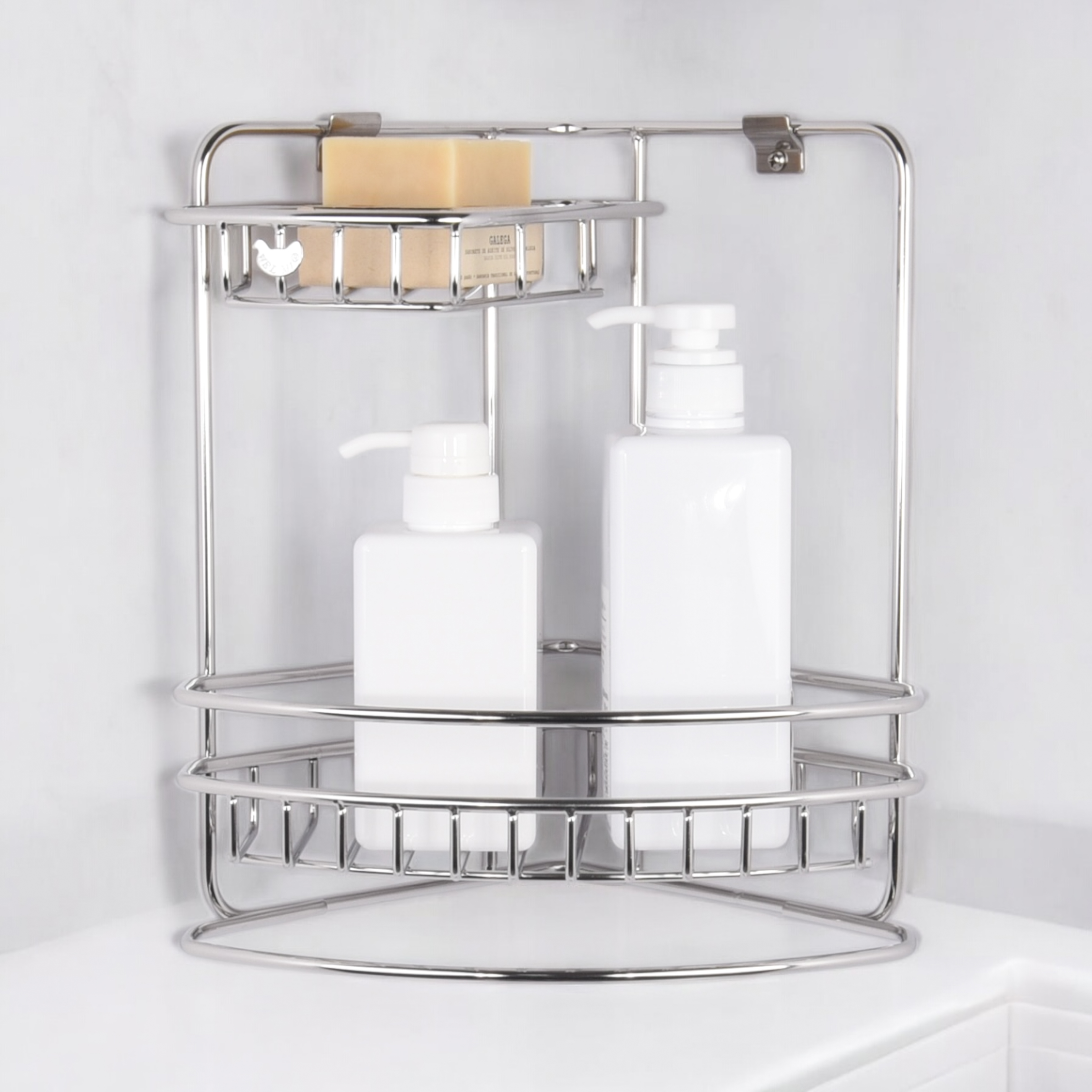 空間 安裝於最節省空間牆角位置,可置放高瓶罐沐浴乳洗髮精